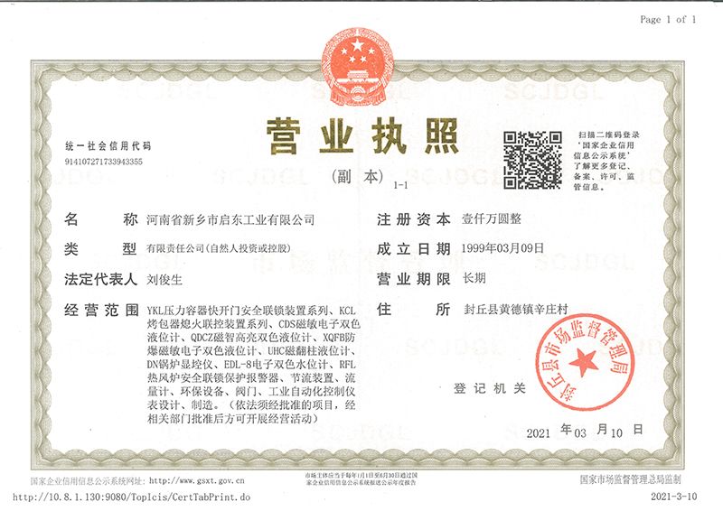 河南省新鄉(xiāng)市啟東工業(yè)有限公司始建于1987年,是專注研發(fā)、生產(chǎn)自動化儀器儀表(主要與壓力容器、鍋爐等容器配套使用)的廠家。主要產(chǎn)品有液位計(磁敏雙色型、磁翻柱型等)系列、烤包器熄火聯(lián)控裝置系列、壓力容器快開門安全聯(lián)鎖保護裝置系列、鍋爐報警器系列。二十多年來,公司產(chǎn)品暢銷國內(nèi)并遠銷俄羅斯、蒙古與東南亞,深得廣大用戶的信賴和好評。我們多年來致力于自動化儀器儀表的研制生產(chǎn),公司現(xiàn)具有完善的生產(chǎn)、試驗、檢測手段和設(shè)備。科技創(chuàng)新、誠信服務(wù),是我們不變的經(jīng)營理念,我們將以強有力的技術(shù)支持及售后竭誠為客戶提供良好的服務(wù)。  2012年我公司成功研發(fā)了KCL系列烤包器熄火聯(lián)控裝置,并于2013年2月2日榮獲中華人民共和國國家知識產(chǎn)權(quán)局辦法的《實用新型**證書》<**號:2021202257735>該產(chǎn)品廣泛應(yīng)用于唐鋼等大型鋼鐵企業(yè),為烤包器安全作業(yè)提供了有力的保障。  2002年我公司成功研發(fā)磁敏電子雙色液位計獨特的高亮度LED紅綠雙色顯示,獲得了專家的首肯和用戶的一致好評。在此基礎(chǔ)上我公司研發(fā)人員十年磨一劍,致力于XQFB-1防爆型磁敏雙色液位計的研發(fā),于2013年12月27日由國家防爆電器產(chǎn)品質(zhì)量監(jiān)督檢驗中心檢驗合格并頒發(fā)防爆合格證書<編號:cnex19.0883>。該產(chǎn)品性能得到了充分的發(fā)揮,廣泛應(yīng)用于含有Ⅱ類A·B級T1-T4組可燃氣體或蒸汽與空氣混合形成的爆炸性混合物的0區(qū)、1區(qū)危險場所。連接用戶DCS或PLC系統(tǒng)實現(xiàn)遠距離集中顯示和控制,從而實現(xiàn)節(jié)能、數(shù)字化管理。為用戶增加了一定的經(jīng)濟效益和社會效益,。2014年公司成功申請了夢潤儀表的logo,新的品牌新的形象,夢潤儀表是啟東的LOGO, 歡迎新老用戶前來洽談合作。  我們一如既往地注重科研的投入,憑借產(chǎn)品的不斷更新、加大科技含量,進一步拓展市場。我們相信品質(zhì)成就未來,以過硬質(zhì)量、優(yōu)惠價格、完善的售后服務(wù)熱忱歡迎廣大客戶來我司視察指導(dǎo)、洽談業(yè)務(wù);精誠合作,共創(chuàng)輝煌!
